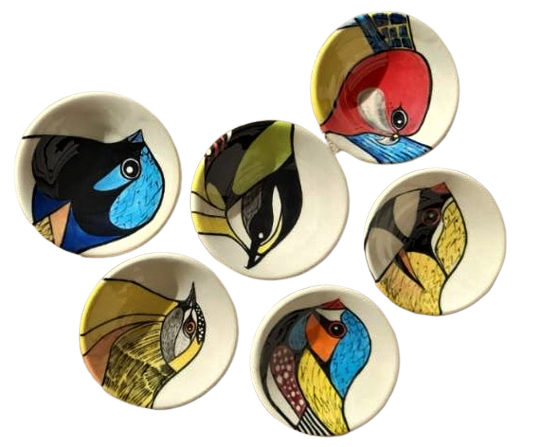 Bright colours and a fun lifestyle along the SA coast translate to bold decorations on wheel-thrown / hand-built bowls, plates, oil bottles, and quirky objects as one-offs.